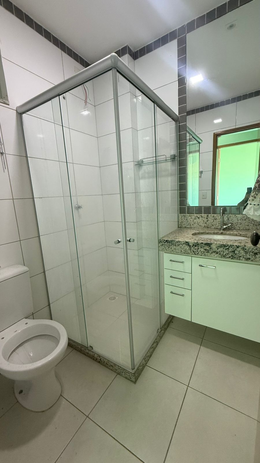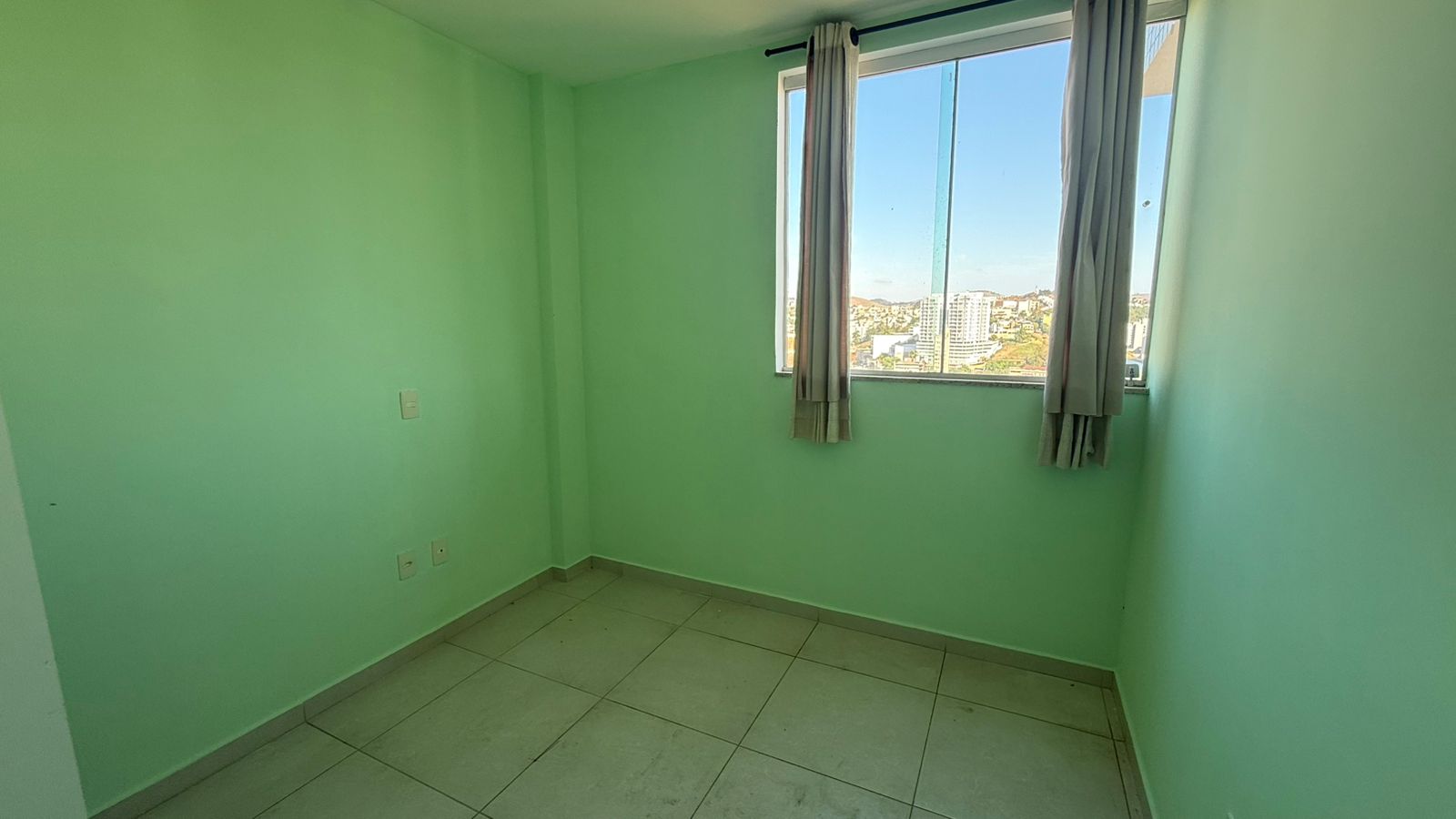 Apto. 01 (70m²) c/ 02 quartos sendo um deles climatizado, sala ampla, varanda, banheiro social, cozinha com armários, área de serviço e garagem.