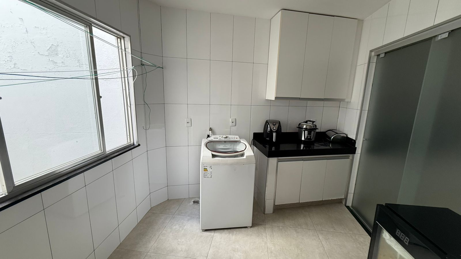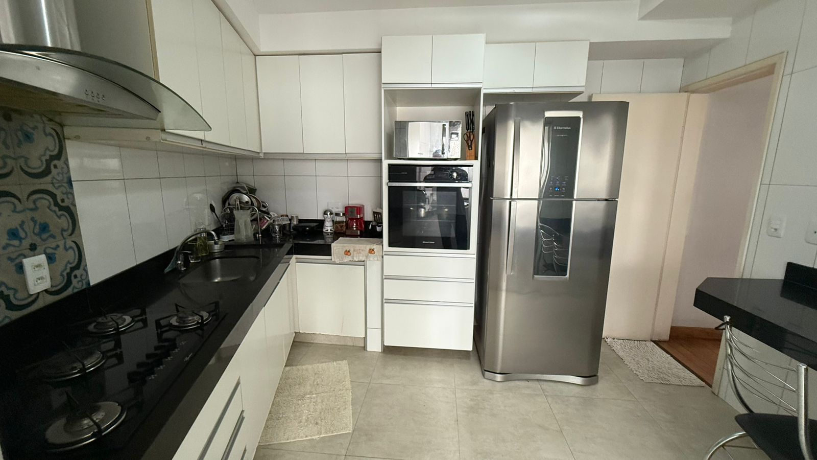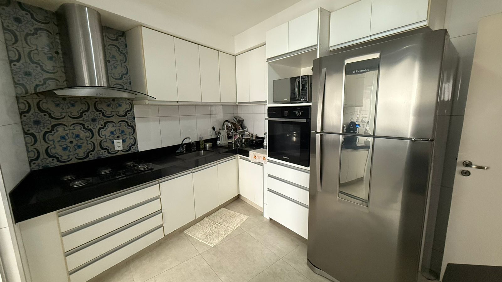 Apto. 120m²) c/ 03 quartos sendo 01 suíte, sala de estar, sala de jantar, 02 banheiros, cozinha toda montada com armários planejados, fogão cooktop, coifa, lavanderia e garagem.