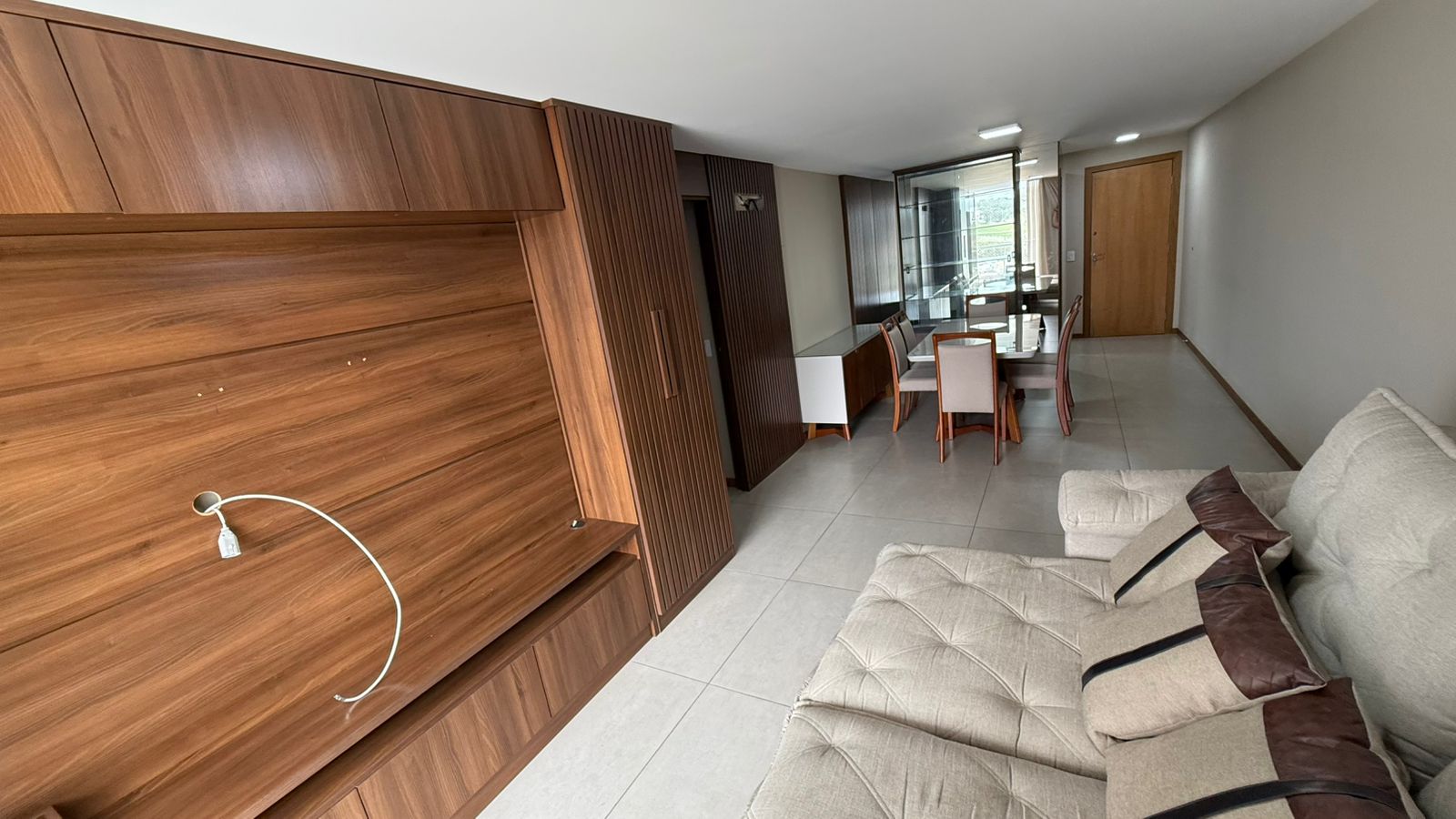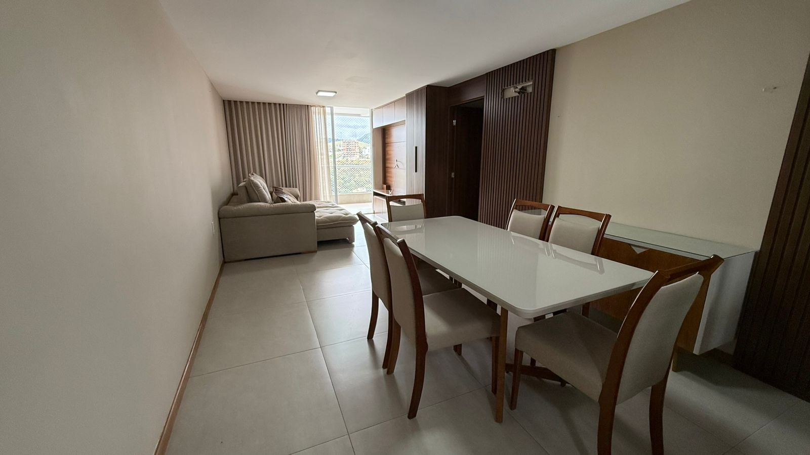 Com planta inteligente e acabamentos de altíssimo padrão, o apartamento é composto por uma ampla sala para dois ambientes, integrando de forma harmônica a sala de estar e a sala de jantar. O espaço foi cuidadosamente planejado com painéis de LED, espelhos, rebaixamento em gesso e revestimentos de alto nível.