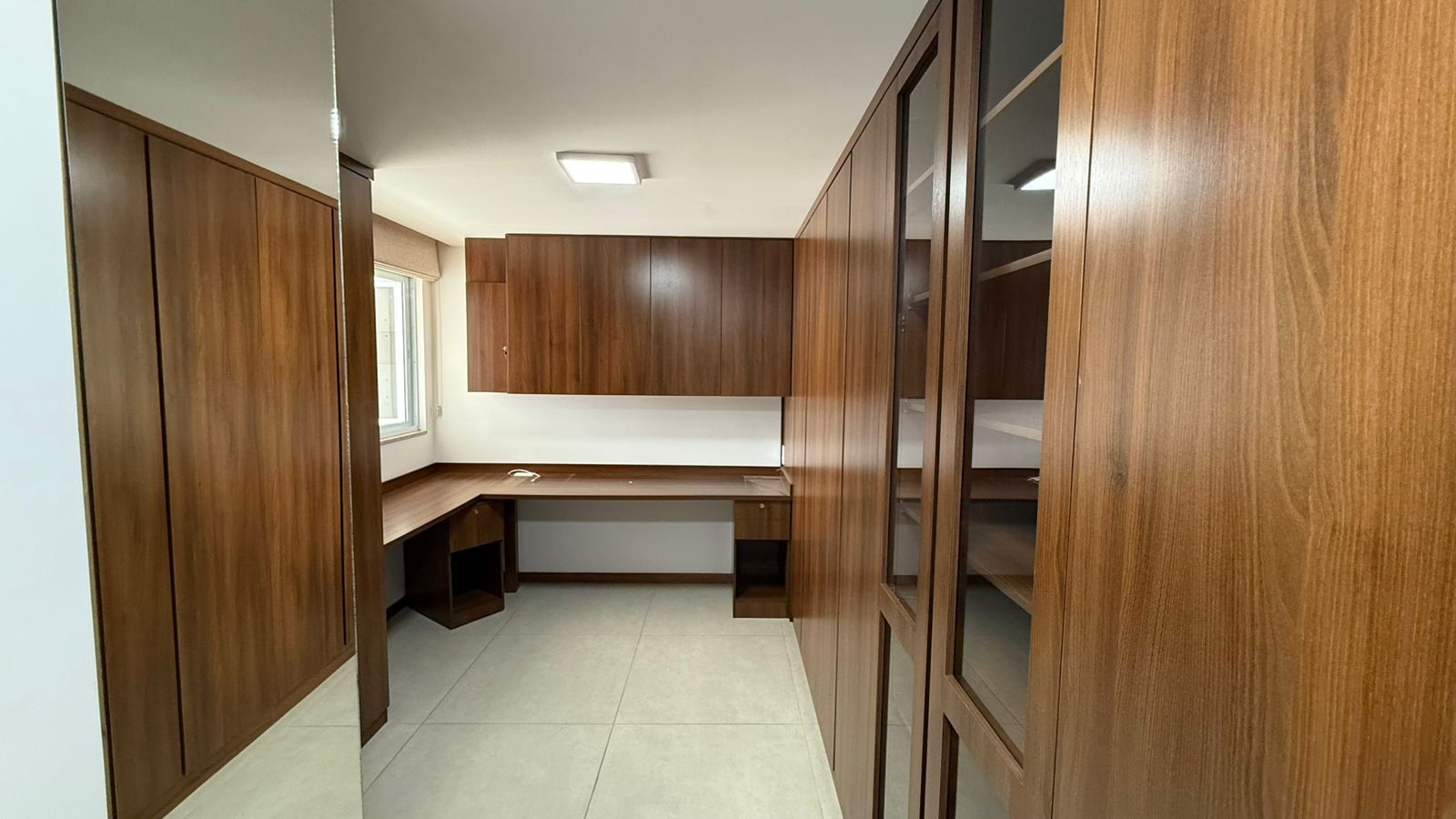 Na área íntima, o apartamento dispõe de três quartos, sendo uma suíte, todos com guarda-roupas planejados (exceto em um dos dormitórios). O banheiro social com planejados, painéis de Led.