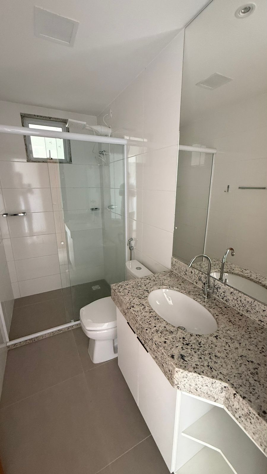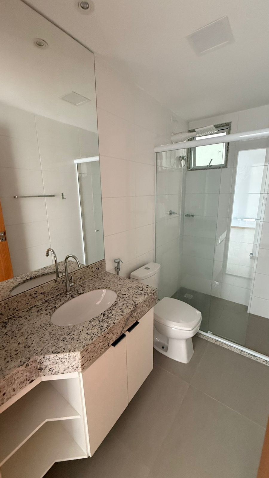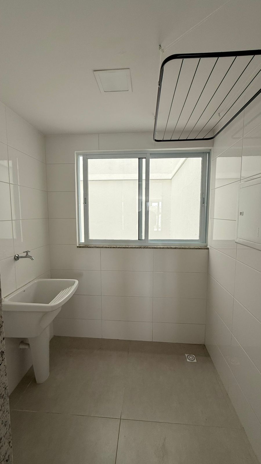 Apto (75m²) c/ 02 quartos sendo um suíte, sala ampla, varanda, banheiro social, cozinha americana, área de serviço e garagem.