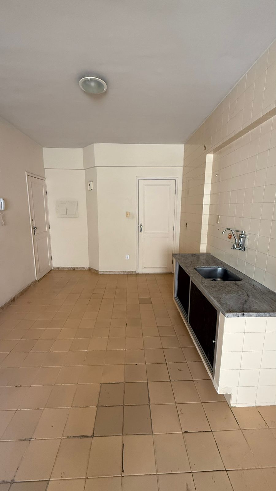 Apto. 3º andar (130m²) c/ 02 entradas independentes, 03 quartos sendo 01 suíte, sala ampla para dois ambientes, banheiro social, cozinha, dependência de empregada completa, lavanderia e garagem.