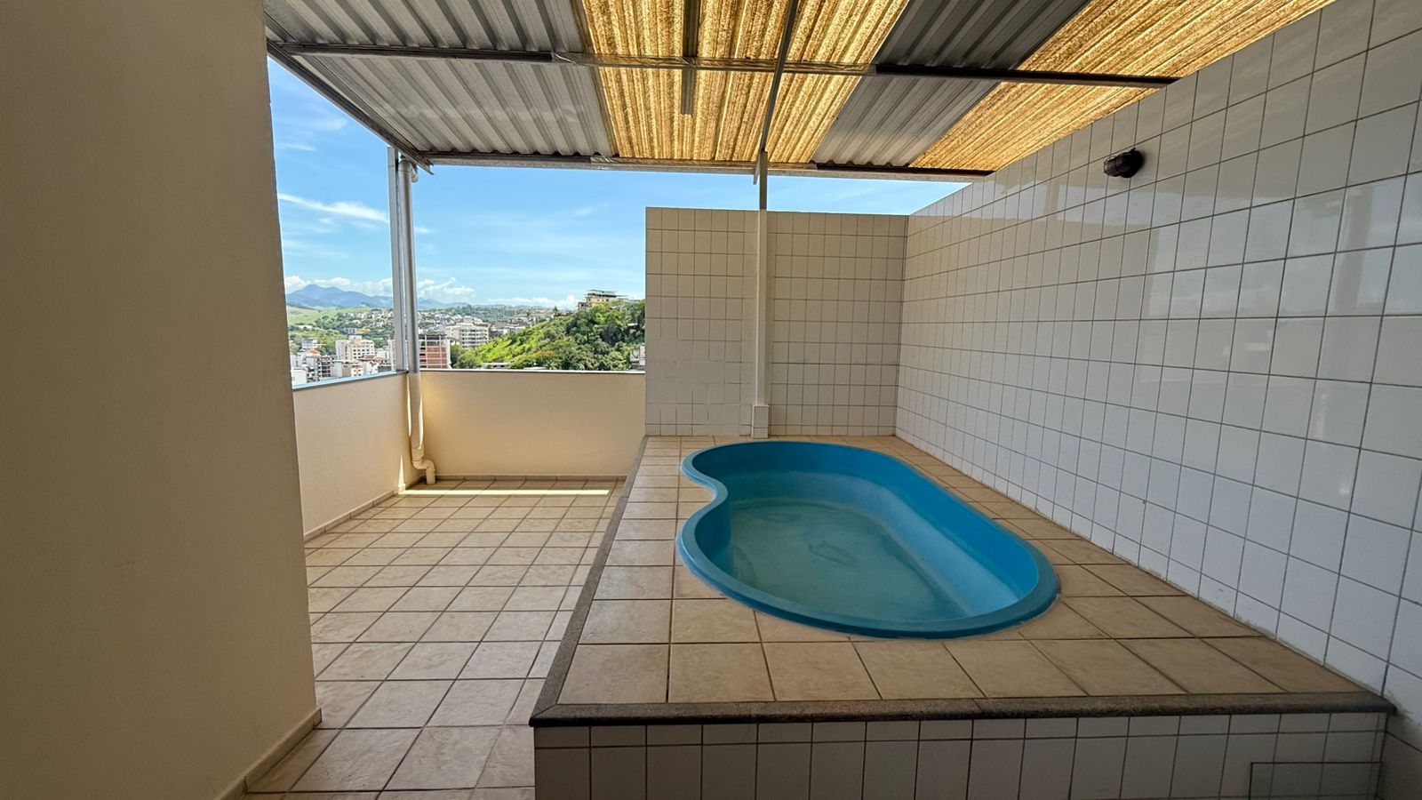 Cobertura (160m²) pavimento inferior: sala de estar, sacada, banheiro social, 02 quartos, cozinha com armários, área de serviço; pavimento superior área gourmet completa com churrasqueira e piscina, quarto, banheiro e área livre ampla.