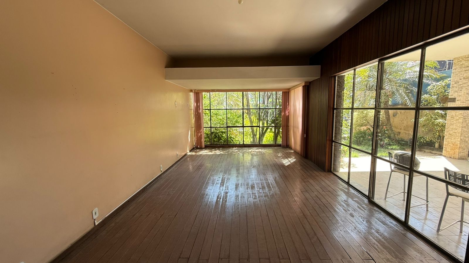 Pavimento térreo: conta com garagem para 03 veículos, jardim, entrada lateral independente, sala ampla para dois ambientes, 01 quarto com vista para o jardim, banheiro social, dependência completa de empregada (com banheiro), cozinha, lavanderia e quarto de despensa.