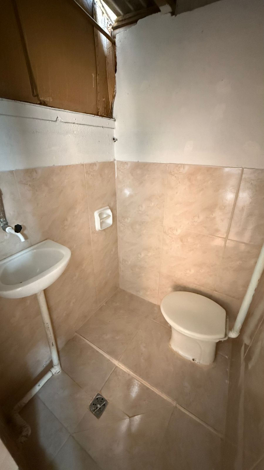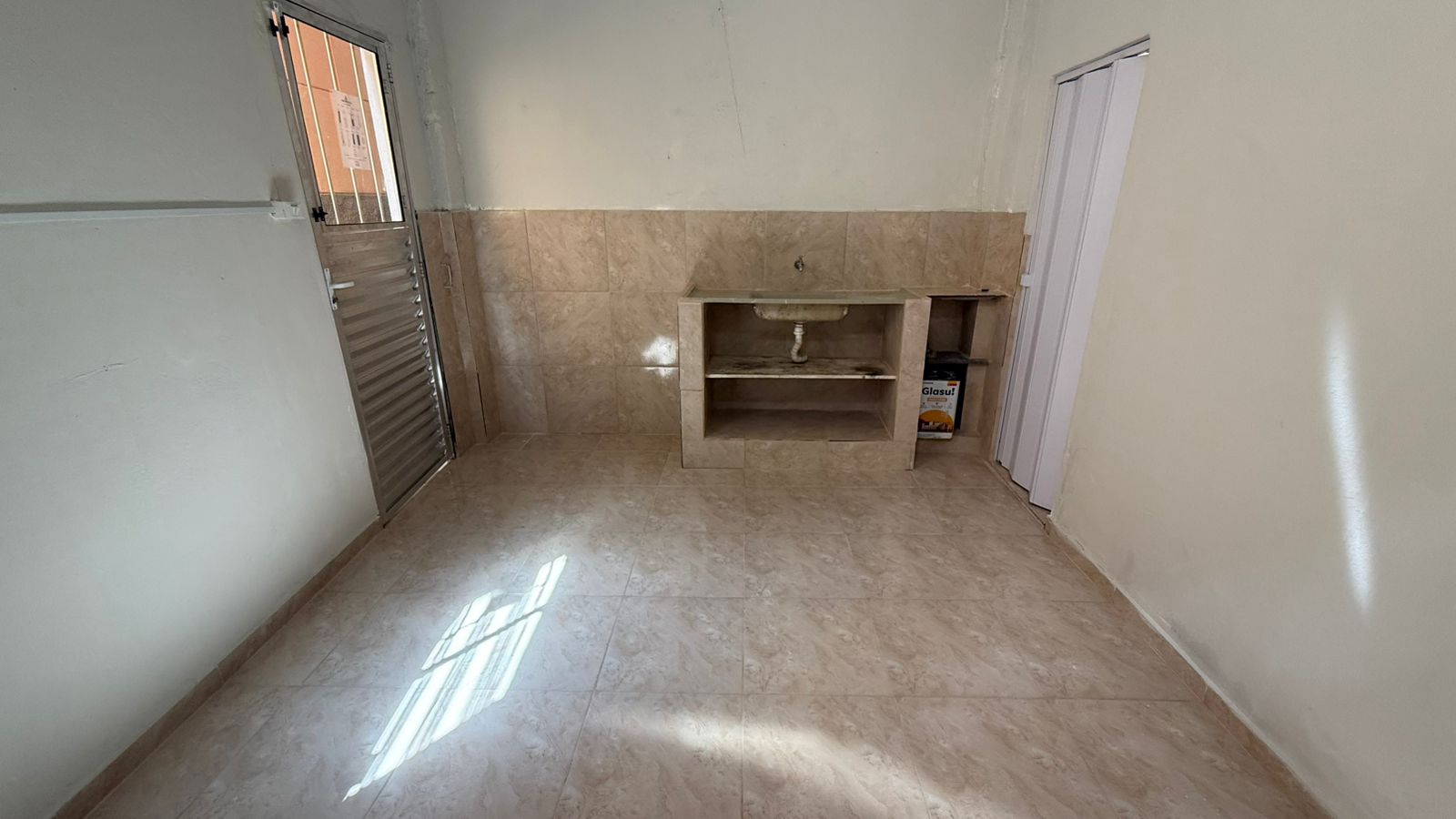 Kitnet térreoc/ quarto/cozinha, banheiro social e área de serviço.